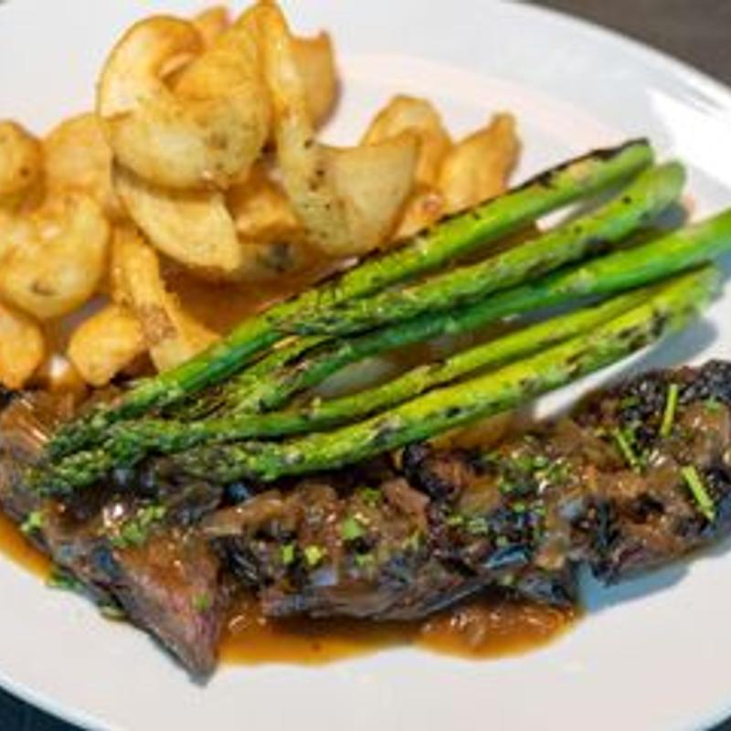 Served with seasonal vegetables, loaded potato, and Jacobsen salt • Choice of Sauces: Demi-glace | Chimichurri • Add: Grilled Shrimp +$7.00 | Blue Cheese Crust +$4.00 | Mushrooms +$5.00 • Prime Rib - Sundays after 5 pm
